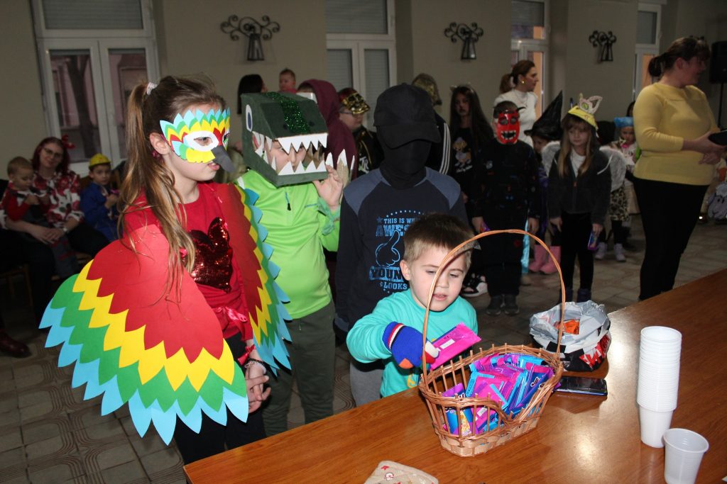 Délután az ovisok és alsósok farsangi bulija vette kezdetét. Sok szép jelmezt láthattunk. A farsangoló gyerkőcök az adai Jancsi bohóc bábszínház Zsákbamacska című előadását élvezhették. A harminc perces kesztyűbábjáték mókás, bábos, farsangi kamrajelenet, amely egy egércsalád hétköznapi harcairól szól egy macskával.